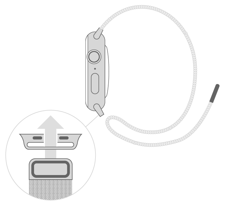 Never force the band into the slot. If you don't feel or hear a click, slide the band to the left, then to the right. If the band is installed properly, it won’t freely slide until you hold down the band release button. If the band still doesn’t lock, center the band, and push it into place. Then carefully wiggle the band up and down. Don't wear your Apple Watch if the band is sliding.